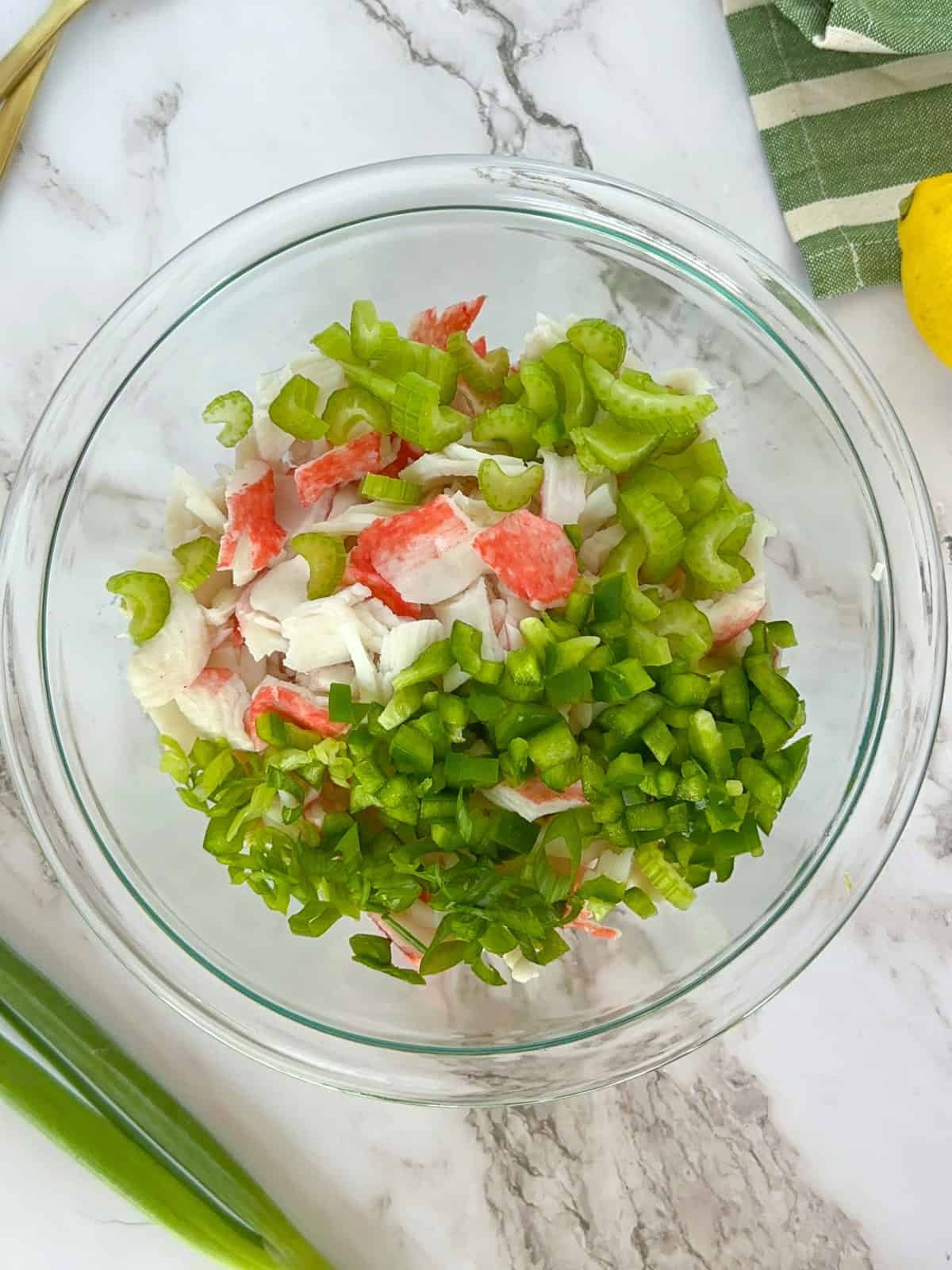 - Imitation crab meat– I like to use the flake imitation crab meat but you can also use real lump crab for a more authentic flavor.